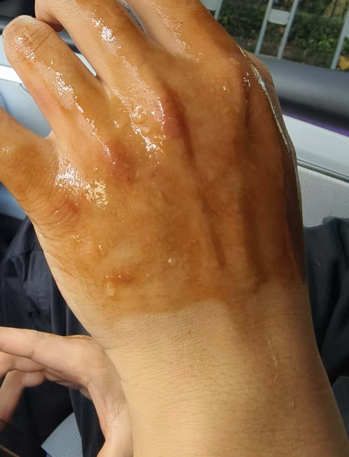 11月25日,湖北武汉的黄先生反映,在阳圣坊老北京涮肉武汉一门店用餐时,服务员添加液体燃料时,因炉子的明火未完全熄灭,导致黄先生手部被二度烫伤。25日下午,相关部门回应记者,北湖街道办以及北湖市场监督管理所已经介入处理,并组织商家和黄先生就赔偿等事宜进行协商。