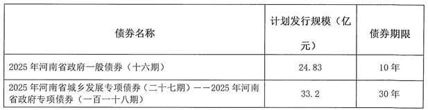 资金投向方面,2025年河南省政府一般债券(十六期)募集资金用于河南省基础设施项目建设;2025年河南省政府专项债券(一百一十八期)募集资金用于城乡发展领域。